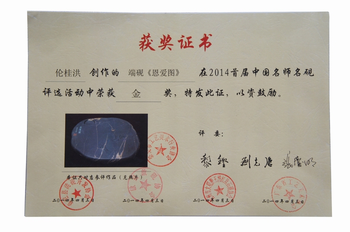 《恩爱图》砚荣获金奖